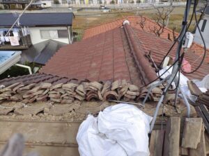 地震災害時の建物損壊を防ぎたいとのご意向で、屋根を瓦から軽量の金属屋根に葺き替えのお仕事をいただきました。