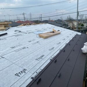 ブログ蕨市 金属屋根を重ね張りする前に下地合板を張りました